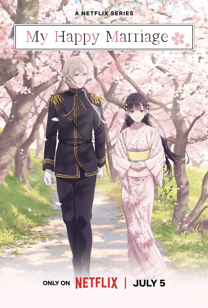 Because I enjoy anime, Netflix’s algorithm has been hurling constant reminders at me about a new series: My Happy Marriage. I had dismissed it as of no interest to me, as I don’t tend to enjoy shōjo anime (given that I am a spooky-hearted thirty-something and the demographic of shōjo is bright teenage girls, this is perhaps no surprise). But viewing it from my role as a research assistant for the Drawing on Forced Marriage project, the title caught my eye. After all, arranged marriages – and forced marriages – are a staple of the romance plot. Perhaps this would be no different. Within an episode, I realised my assumption was correct: the entire narrative of the anime hinges on various forms of arranged and forced marriage
