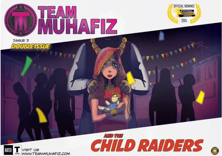 I was very excited when my copy of Team Muhafiz and the Child Raiders arrived one fine Saturday morning. Nevertheless, I put it on the coffee table, intending to have my breakfast in blissful ignorance of all the horrible things outside my living room. Needless to say, 5 minutes later, the comic lay open in my lap and my tea was getting cold.
